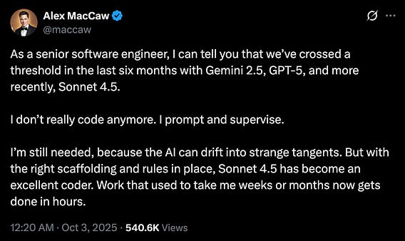Totally agree. A seasoned dev can get a lot of productivity out of LLMs (though I like to do things manually occasionally because it helps me learn better).
