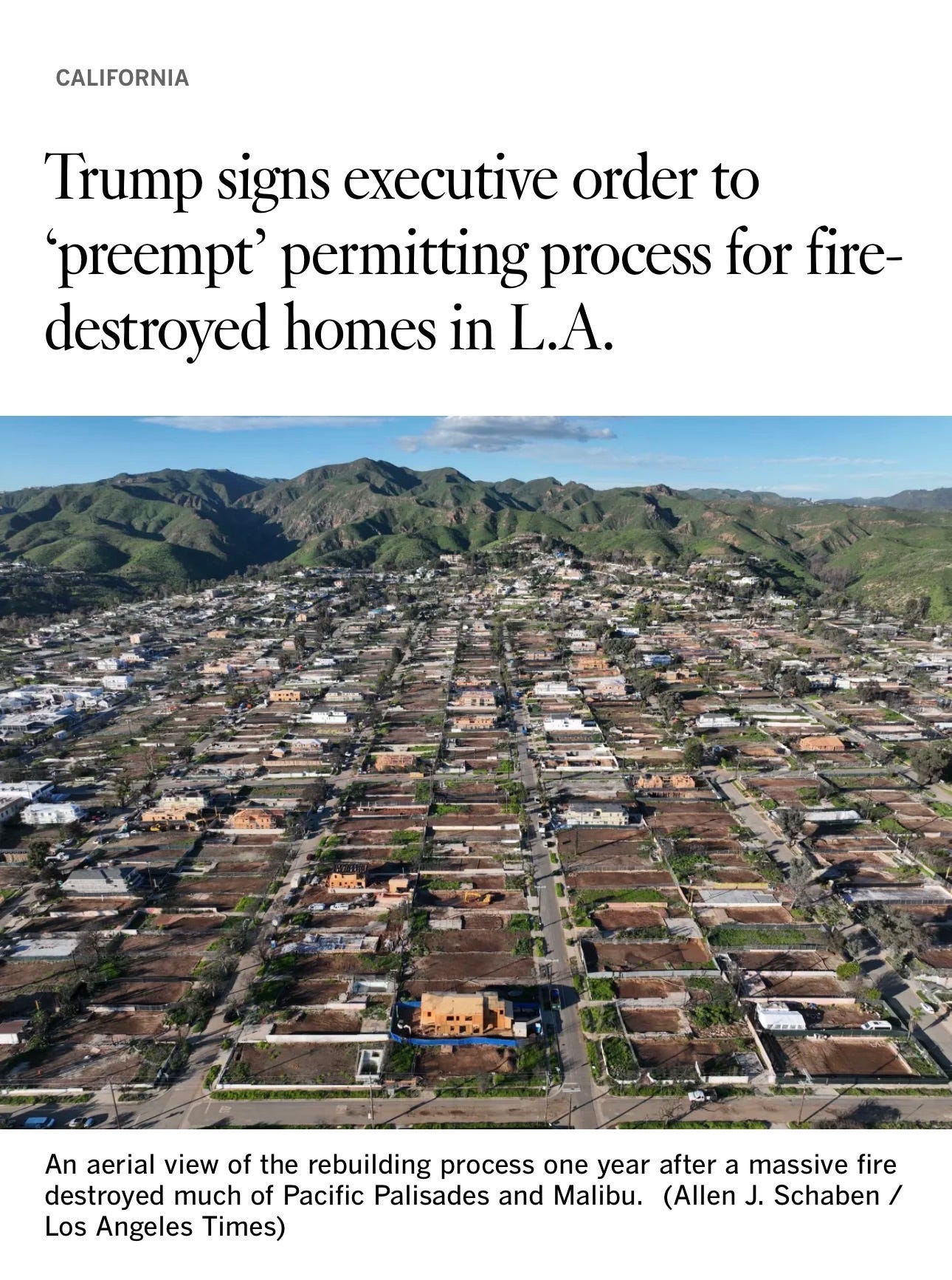 This Federal intimidation has been at our front door, even at active rebuilding job sites, for months. Today’s announcement about an executive order from this administration claiming to “cut red tape” for rebuilding after the Eaton and Palisades Fires is just another tactic in their playbook. Executive orders do not override local or state authority, and this reads like more intimidation and narrative control, especially when it conveniently pulls the focus away from the very real threat of ICE activity in our communities. It's more hot air from the blowhard authoritarian in chief.