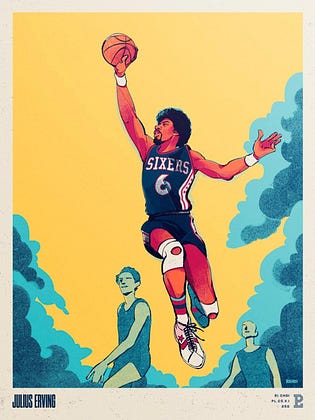 Beautiful Julius Erving artwork, from artist Ri Choi.