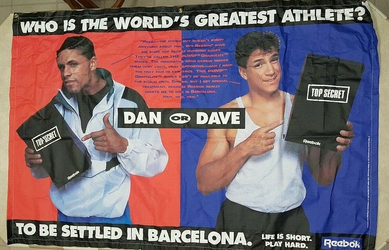 Nike has such a sustained reputation for great advertising, and support of athletes, that over 30 years later, I believed 1992’s “Dan or Dave” ad campaign belonged to them.