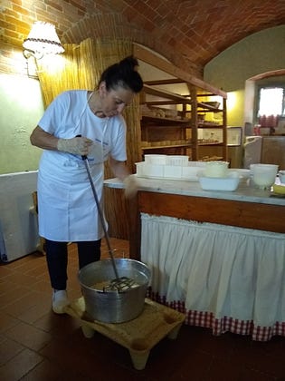 A demonstration of how fresh ricotta is made by hand (Tuscany)