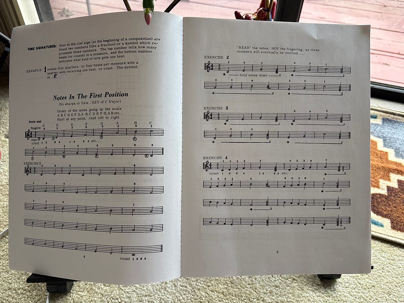 In other news… OMGOMGOMGzzzzzz!!!!!!!!!!!! It’s been weeks since I did this. I’ve mostly been just randomly dinking around on the acoustic and running (read: bungling) spiders. That second chord on Exercise 2 used to be torture with my teensy hands. IF I could even reach it, it always came out splunky and utter crap. But today: voila! There it is!!!!