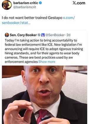 I just heard you say in another clip you want „ better trained Gestapo“ . If you you and your other corporate Dems like Hakeem Jeffries and Chuck Schumer think you can allow them more funds to go to war with more Democratic cities and kill more Dems, you’ll pay the price, we’ll make sure you can go work at Home Depot after the next election. They will NEVER train them better, they buy more proudboys to kill I’d that’s what you allow. Decide wisely. THe Gestapo needs to be abolished, and then built from scratch that’s the only way, you choose the other way and aide them, your careers are over just like hopefully the ones in the far right Nazi media who helped him getting elected again.
