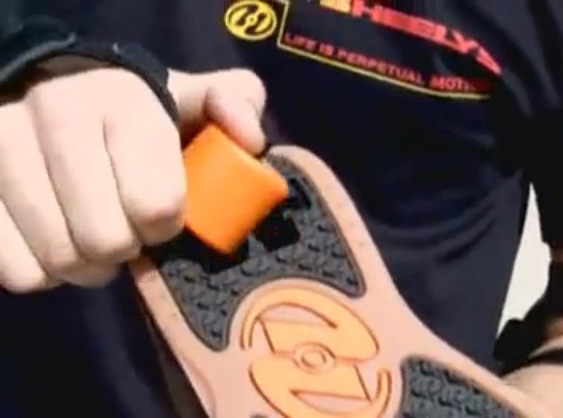 “The only shoe with a removable wheel in the heel that lets you walk or run, and then by simply shifting your weight to your heels, you’re rolling.”