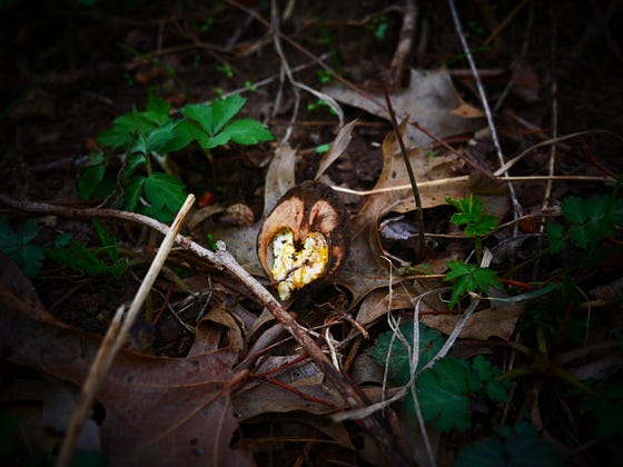 A squirrel dropped this black walnut half out of a tree and I just wanted to share the nice little heart shape you get when they're cleaved in two.