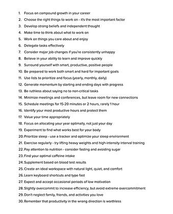 I think I am at least somewhat more productive than average, and people sometimes ask me for productivity tips. So I decided to just write them all down in one place.