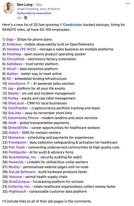 Here's a new list of 32 fast-growing YC backed startups, hiring for remote roles, all have 50-100 employees: