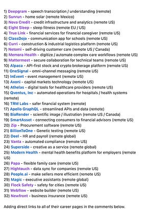 Here's a new list of 32 fast-growing Y Combinator backed startups, hiring for REMOTE roles, all have 100+ employees: