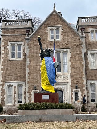 What a statement by France! I live in the DC area. This is the French Ambassador’s house. After i passed this I drove up Massachusetts Ave and the United Kingdom Embassy was flying the Ukrainian flag next to theirs and also the Finland embassy. (Probably others too but that’s what I passed today). It’s just terrible what the Felon is doing to NATO, our allies and Ukraine. And utterly predictable.