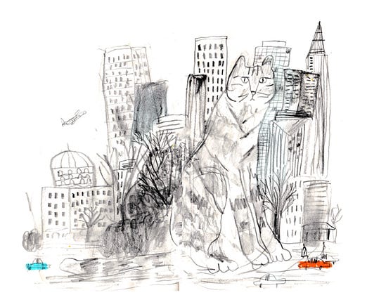 I drew the cat at home, then the rest in Trader Joe’s parking lot. What’s your art process like these days?