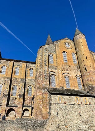This is an unusual view of the abbey in Aveyron’s most famous village.