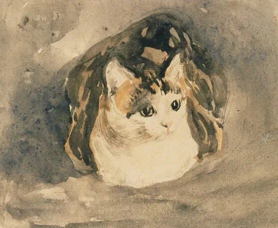 Cat, Gwen John, Graphite and Watercolour on Paper, 1904-1908. Published today: A free collection of Gwen John paintings and quotes at beyondbloomsbury.substa… 🤎