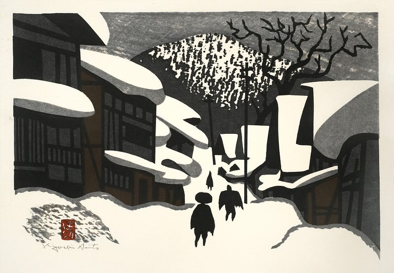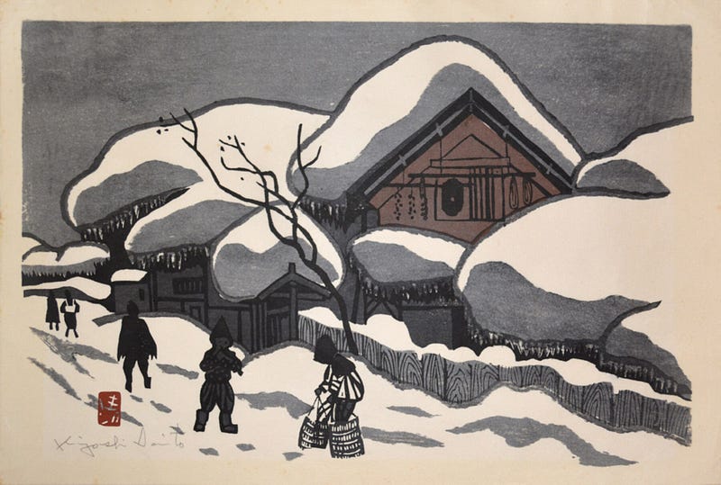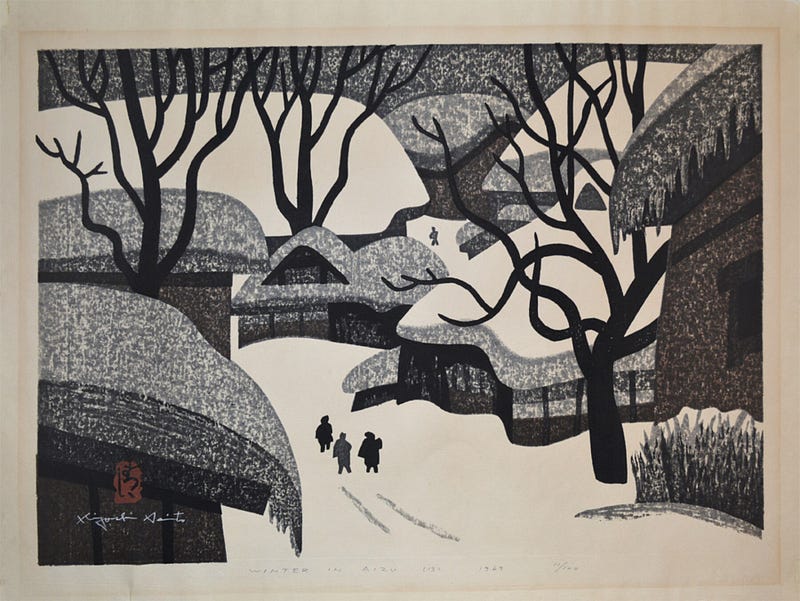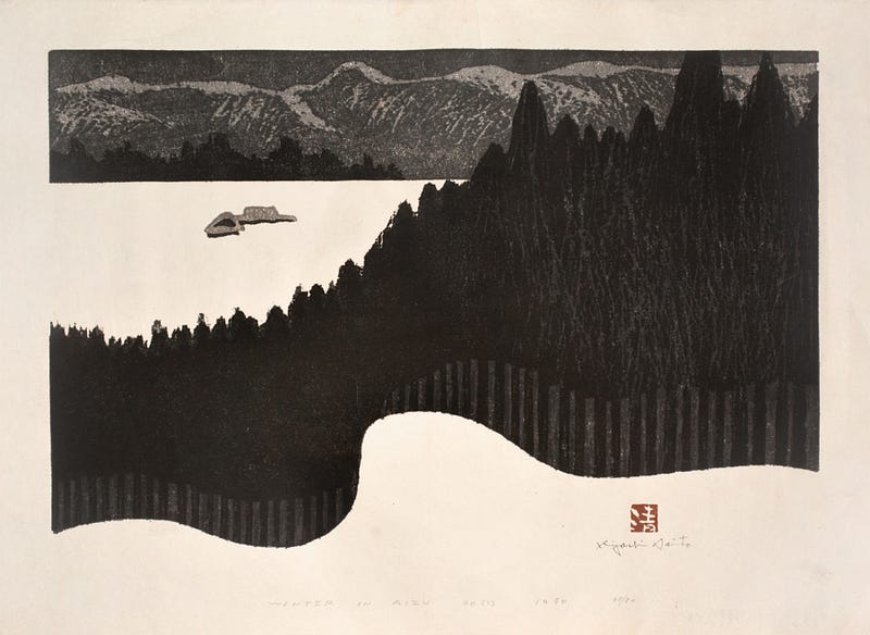 Snow, shadows, and the calm geometry of Kiyoshi Saitō. His Winter in Aizu series is a world of its own.