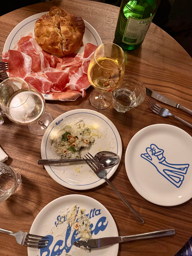 It doesn’t take itself too seriously, but the food tells a different story. Thoughtful, high-quality Italian dishes that hold their own, served on joyfully branded dinnerware.