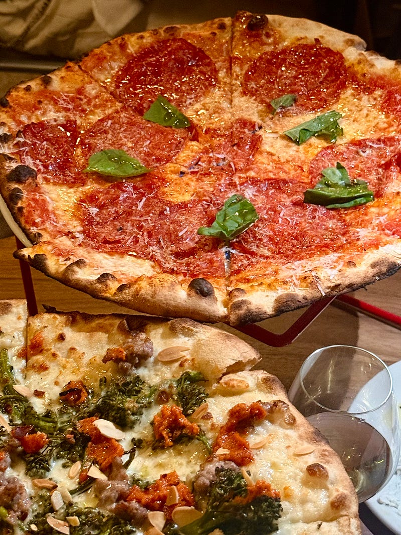 Balera is a pizza spot that leans into disco energy - a DJ spinning gentle house beats, a rotating mirror ball, and thoughtful service, set within a tall warehouse space that feels like it could tip into a dance party at any moment.