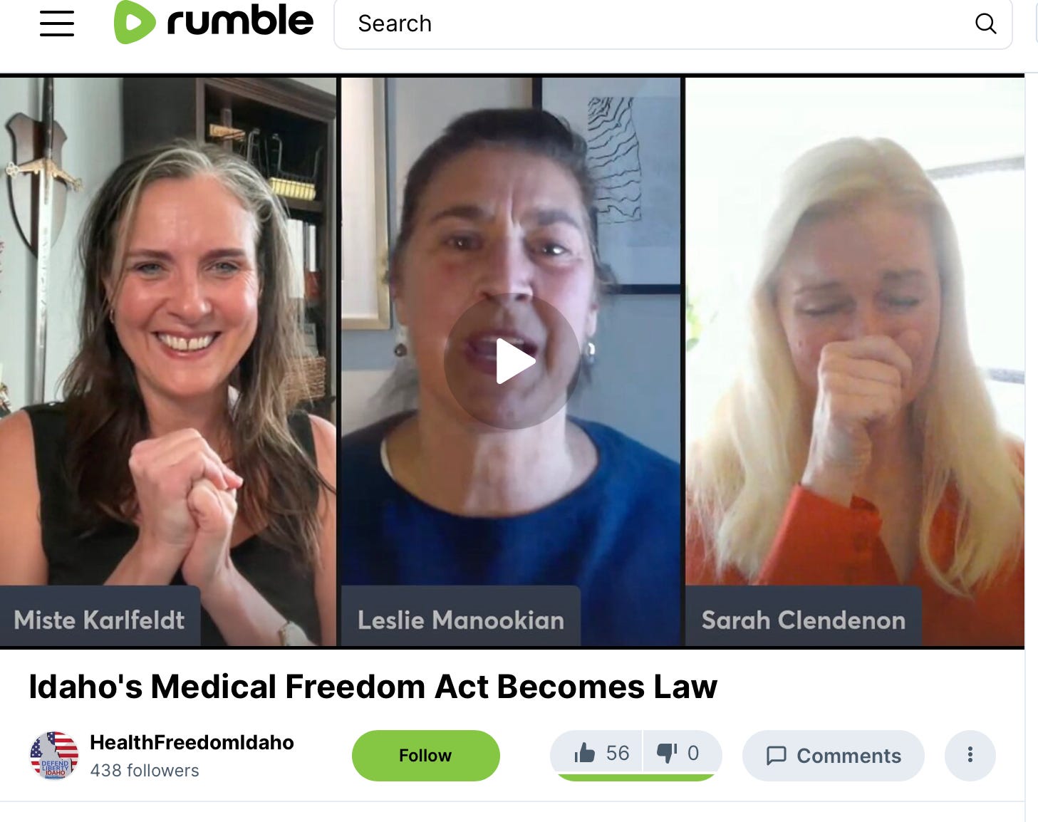After decades of effort, many revisions, thousands of phone calls, countless emails, long days, late nights, and excruciating drama, Idaho’s legislature passed and Governor Brad Little signed the nation’s first true medical freedom bill: S1210aa,aaH - Medical Freedom Act.