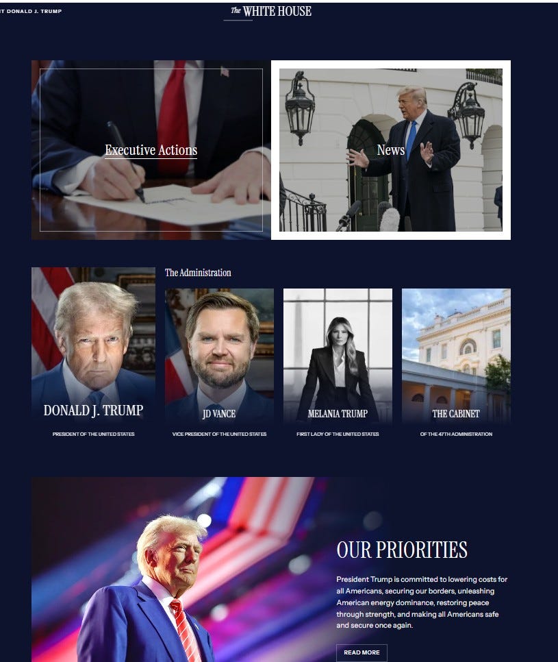 President Trump is committed to lowering costs for all Americans, securing our borders, unleashing American energy dominance, restoring peace through strength, and making all Americans safe and secure once again. — From White House Home page at tinyurl.com/39rht2bh