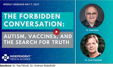 Autism, Vaccines, and the Search for Truth. IMA Chief Scientific Officer Dr. Paul Marik welcomes Dr. Andrew Wakefield for a timely conversation about his early research, the backlash that followed, and his transition to award-winning filmmaker. Speakers: Dr. Paul Marik, Dr. Andrew Wakefield. By Independent Medical Alliance (05/10/25, video 01:11:12 includes detailed article)