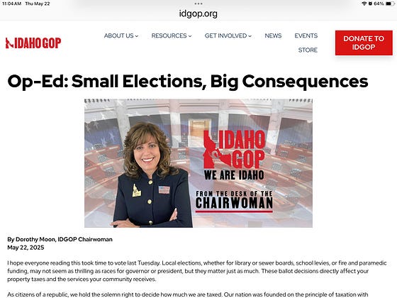 We get the government we vote for. If you don’t participate, you’re letting your neighbors decide what kind of government you get. Ada County saw only 8% voter turnout. Even in politically engaged Kootenai County, turnout was about 30%. Both numbers should be much higher. Every election is a chance to make your voice heard and help shape the future of your community and our great state.