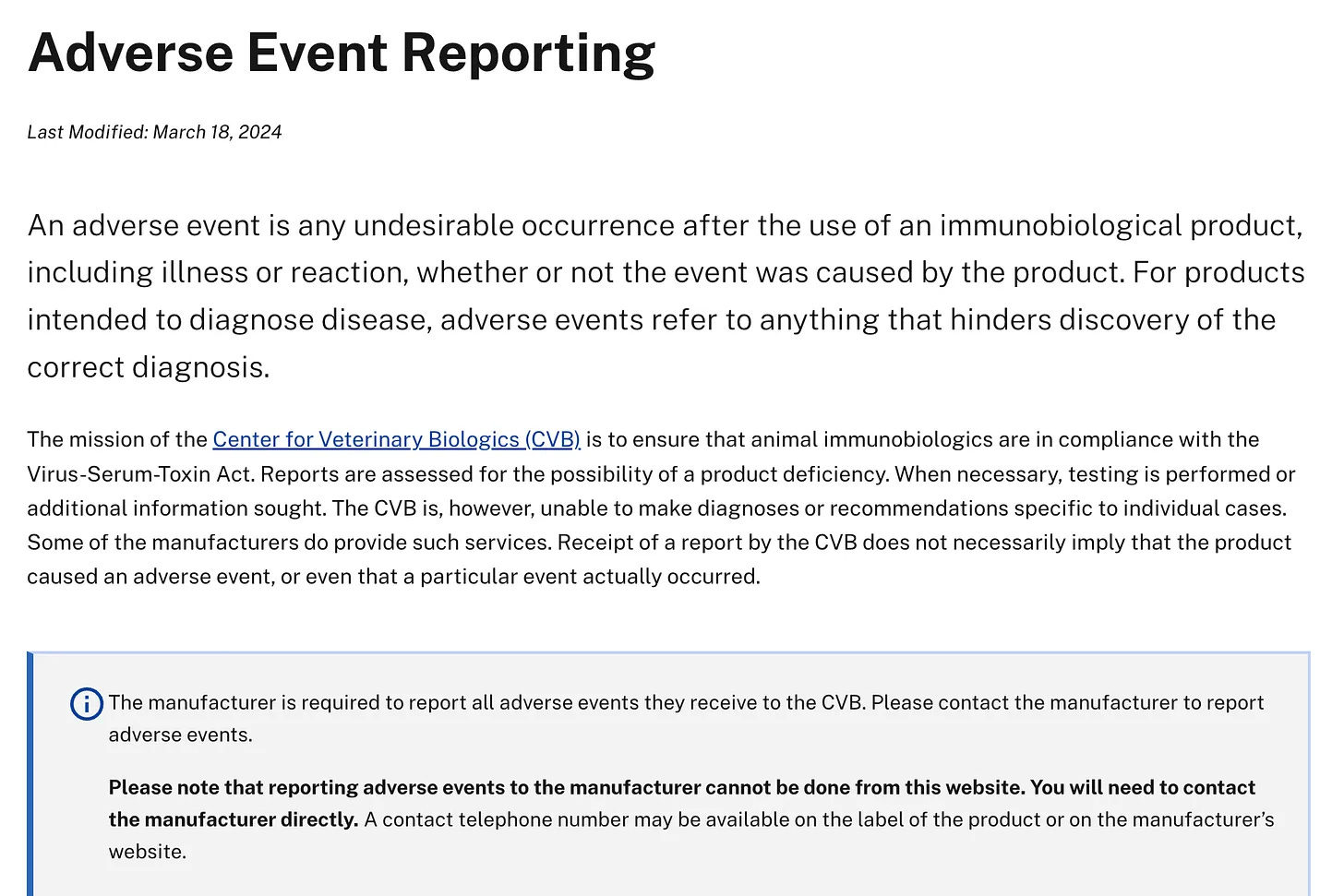No public adverse event reporting system exists at the USDA.