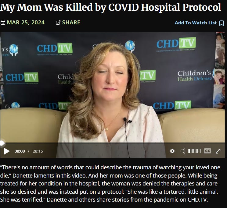 COVID Hospital Protocols — My Mom Was Killed by COVID Hospital Protocol (04/25/24, video 28:15)