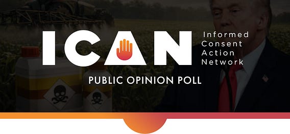Glyphosate — ICAN Poll: Overwhelming Majority of Respondents Oppose Glyphosate Stockpiling, Reject Manufacturer Immunity. New public opinion data from 2,569 respondents reveals near-unanimous opposition to key provisions of the administration’s glyphosate executive order By ICAN (04/03/26)