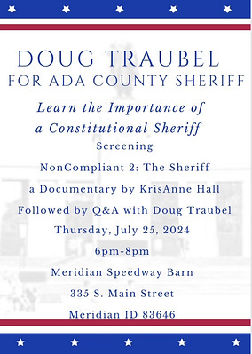 ⭐⭐⭐ ADA COUNTY SHERIFF RACE ~ Movie Screening + Q&A with Doug Traubel ~ 07/25/24 ~ 6-8pm ~ Meridian Speedway ⭐⭐⭐