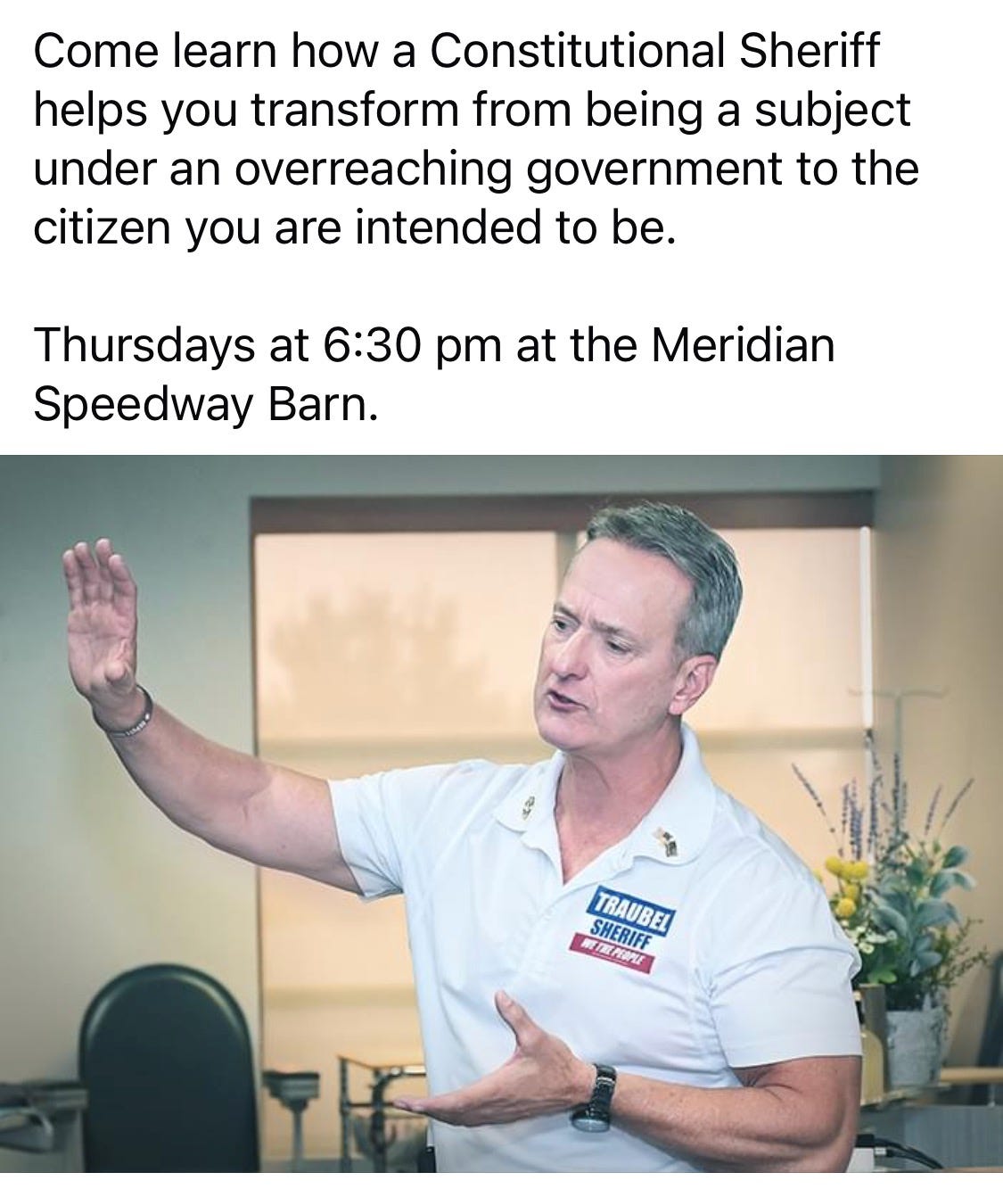 To host an event, contact Doug at 208-999-0779 or email him at Dougforsheriff@proton.me