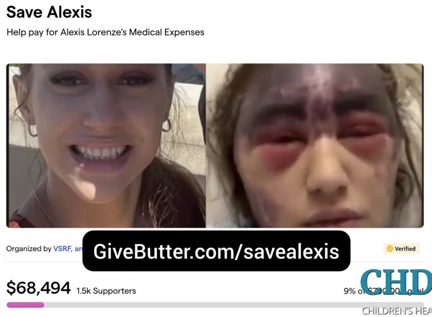 Update by Nurse Angela on Alexis Lorenze, an immunocompromised young woman who was gravely injured when given three "vaccines" at once at University California Irvine hospital (timestamp 0 - 16:58).