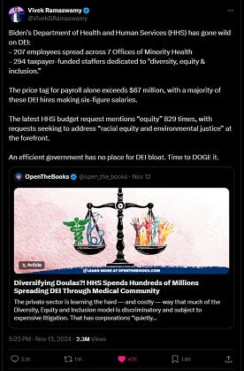 DOGE Is Coming...Our database is at the ready with 10 BILLION lines of public spending. By OpenTheBooks (11/16/24)
