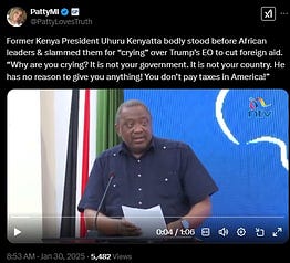 Former Kenya President Uhuru Kenyatta — Cutting Foreign Aid — Could it Help Countries Regain their Independence? (01/30/25, video 01:06)