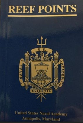 At the Naval Academy, during your first months, the months of Plebe summer, you are required to know by memory the words written in the small book Reef Points .