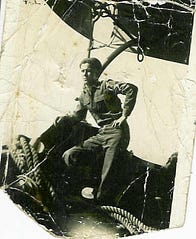 For two or three years, my father trained Philippine units and manned the big guns of Corregidor. He only had a 3rd grade education, but he was a human calculator….able to quickly and accurately multiply numbers in his head. The Army used him. (His picture on the boat from Corregidor to Manila is below. He was Army but his hat looks like a sailor’s cap colored Army green. Maybe it was loaned to him?)