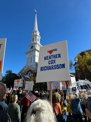 Another sign said, “It’s not over until Heather says it’s over”—the fight for freedom yesterday is but a beginning of Trump2.0’s end. Have hope in the American patriots who know what America must do to defeat this destructive, authoritarian administration. 💙🇺🇸