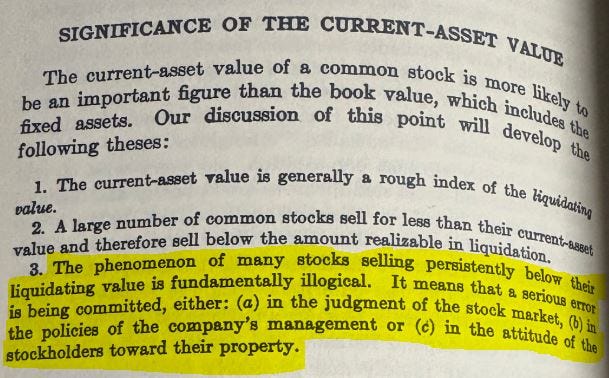 Just like how earnings can be used to return value to shareholders, liquid assets can be used to return value to shareholder. But the funny thing is, often times in the market, the primary focus on a business is it’s earnings, not it’s assets. This can leave large discrepancies in valuations and opportunities for outsized returns. If you can figure out which of the three reasons is causing the potential mispricing, the opportunities can be big.