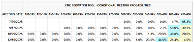 Following this week’s inflation reports as well as comments from FOMC members, CME FedWatch is still pricing the next fed funds rate cut at the September 17th FOMC meeting.