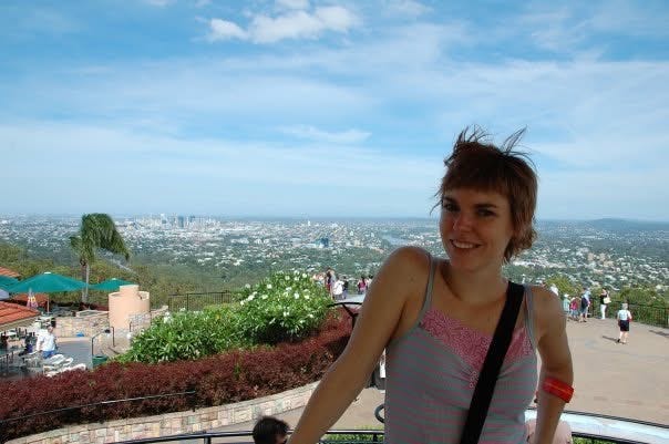 The view from my apartment window is glorious if you ignore the weed dispensary and parking lot that precede the tree-line and sparkling glimpse of a snowcapped Mt. Hood beyond that. Sometimes I just take photos of the sky and clouds when I’m surrounded by grit and asphalt. You can find the beauty and softness in any given environment if you know where to look. Recently I found this old photo of myself enjoying the view at the top of Mt. Coot-tha in Australia when I was in my early 20s.
