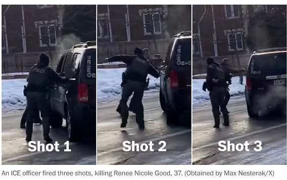 The ICE agent who murdered Renee Good was never in front of her car when he fired the three shots. I hope this helps Kash Patel and the FBI in their thorough investigation.