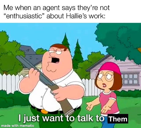 This was on a full manuscript request. Trying to not take it personally but honestly it stings because I don’t know the magical spell that makes agents “enthusiastic enough” 😅