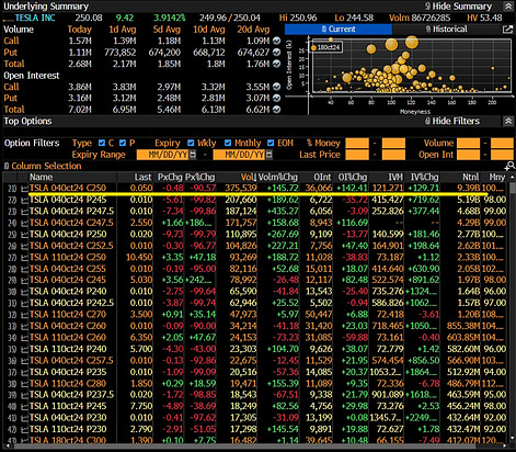 This is 3x the average traded value seen in recent months. Despite expiring today, the 250 calls were up by 291% at their high this morning. Tesla’s stock price closed up by 3.9% at $250.