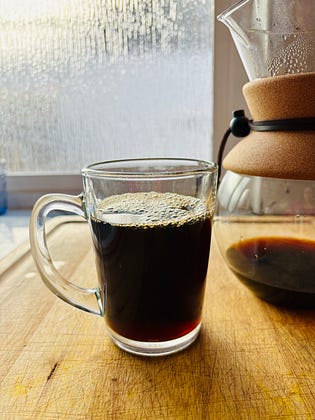 After reading the coffee newsletter series by Annie Fenn, MD, and being slightly horrified to learn about the coffee Iād been drinking (plastics! Yikes!), I dug out the pour over carafe that I never used. Wow. What a great tasting cup of coffee it makes! (And no more plastic) š
