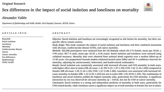 Loneliness (the feeling) predicted all-cause mortality in women but not men.