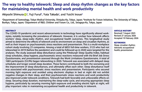 Teleworkers with bright mornings had less stress and better productivity. Those without it had delayed circadian rhythms and worse productivity.