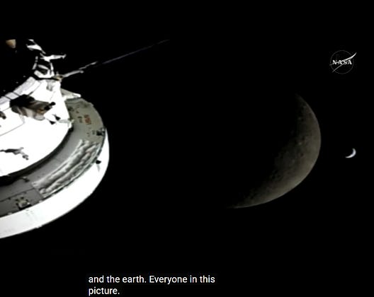 Loving this! Orion, Moon, and Earth. All of us. Seven minutes before the crew disappears from comms for their closest approach.