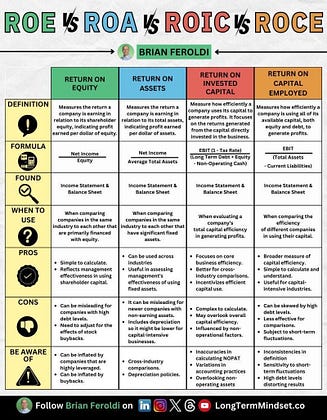 ROE vs ROA vs ROIC vs ROCE