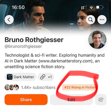 Dark Matter is currently #22 Rising in Fiction on Substack. For a science fiction story, that’s rare and meaningful.