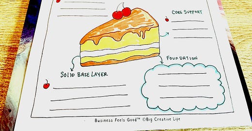 So I sketched it layer by layer: foundation, base, core support, toppings. Each layer showing what my nervous system needed.
