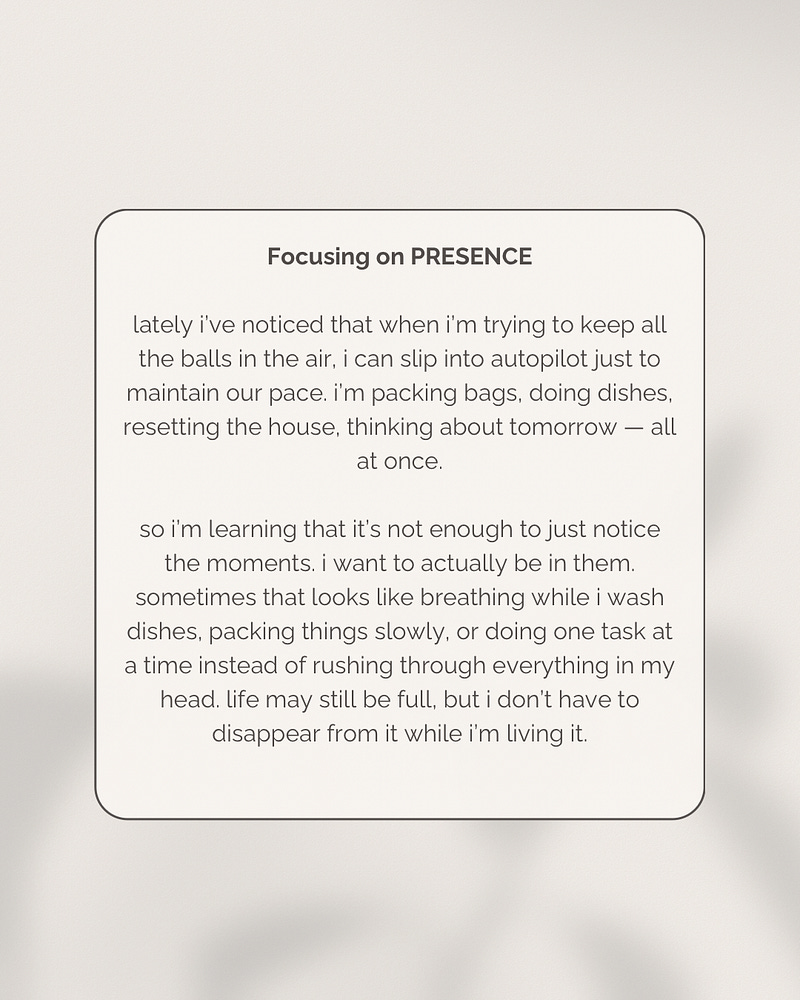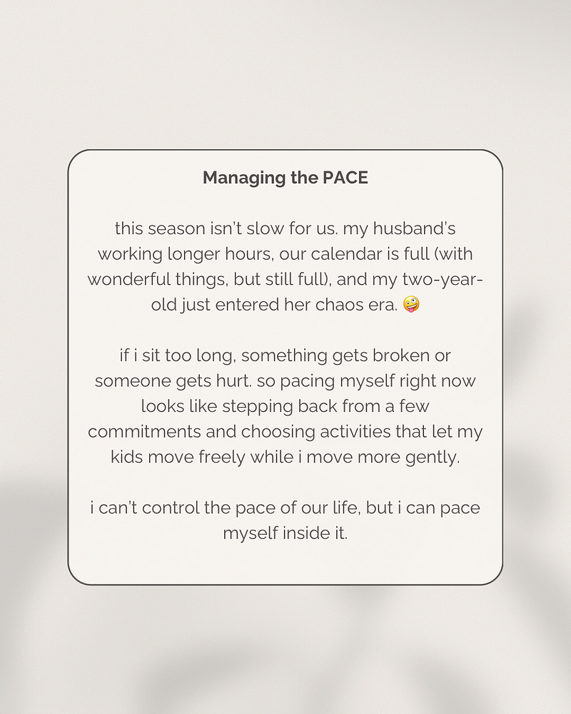 this one feels fuller than i anticipated, and instead of trying to force my life to match the pace i wish it had, i’m learning to move more intentionally inside the pace it actually does.