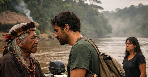Elias volta do território Yanomami com cinquenta e três páginas manuscritas distribuídas em cinco territórios e uma mochila com documentos que ninguém ainda publicou. No caminho de volta, os jornais descrevem o cronograma sem saber que estão descrevendo o cronograma.