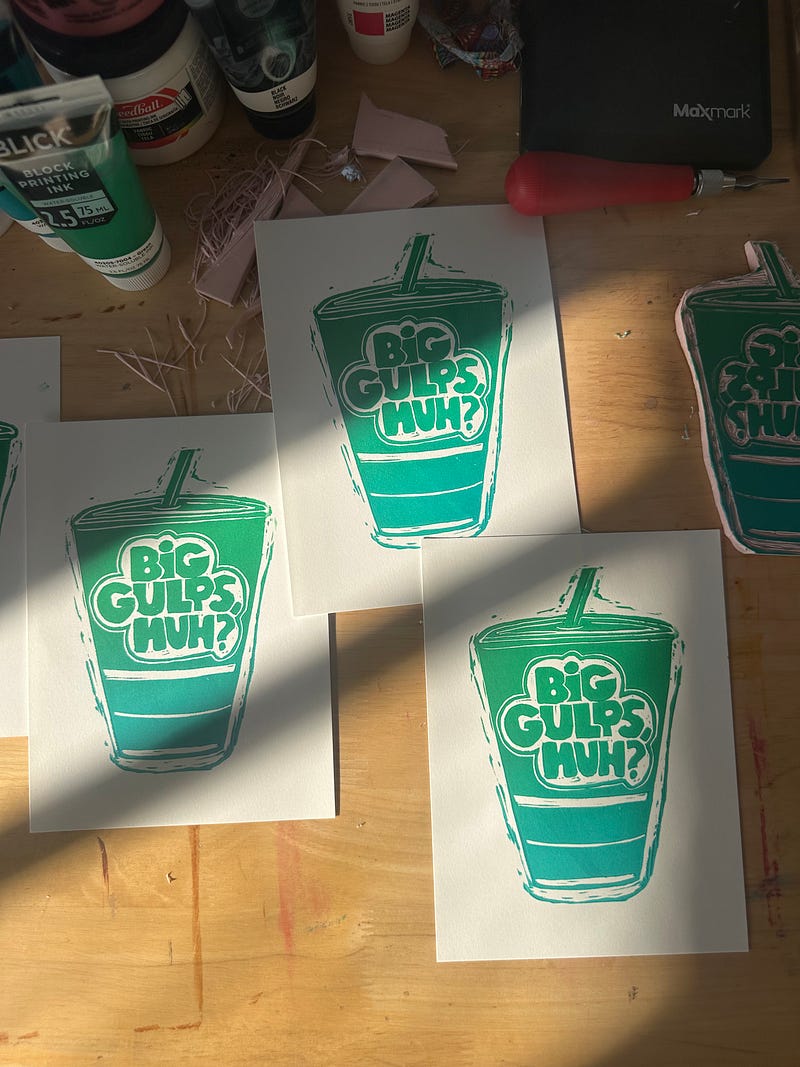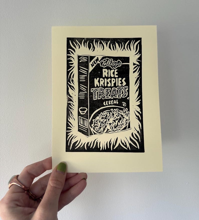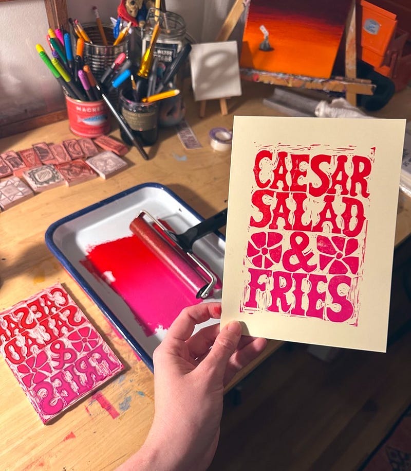 I luvvvv my paid subscribers and want to give them something in return for supporting me on here!! I thought I’d mail everyone a linocut print of their choosing (if you frickin want it). And if you wanna become a paid subscriber in the future I’m good for it in perpetuity!! 🤪